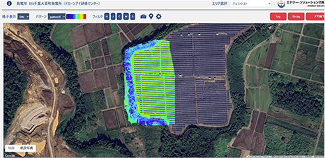 赤外線検査画像をオルソ画像生成し、GoogleMapと連携することで、GPSによる自分の位置と異常箇所が確認可能