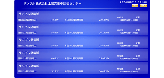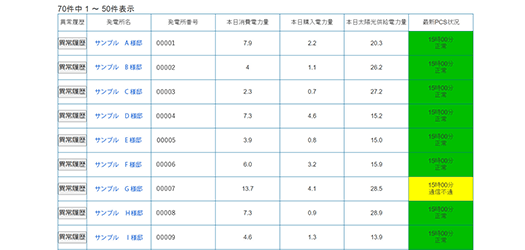 管理サイトで、複数の太陽光発電所の稼働状況を一覧形式で確認できるので、多数の発電所を所有・管理する事業所様の運用コスト削減に繋がります。