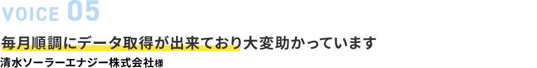 利用開始以降、大きな計量におけるトラブルもなく毎月順調にデータ取得が出来ており大変助かっています。