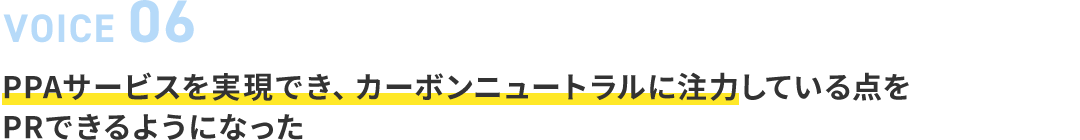 企業としては、PPAサービスを実現でき、カーボンニュートラルに注力している点をPRできるようになった。