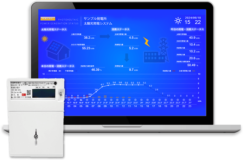 計量法・特定計量制度に対応した電力量計による太陽光発電量や自家消費量の計測を行い、